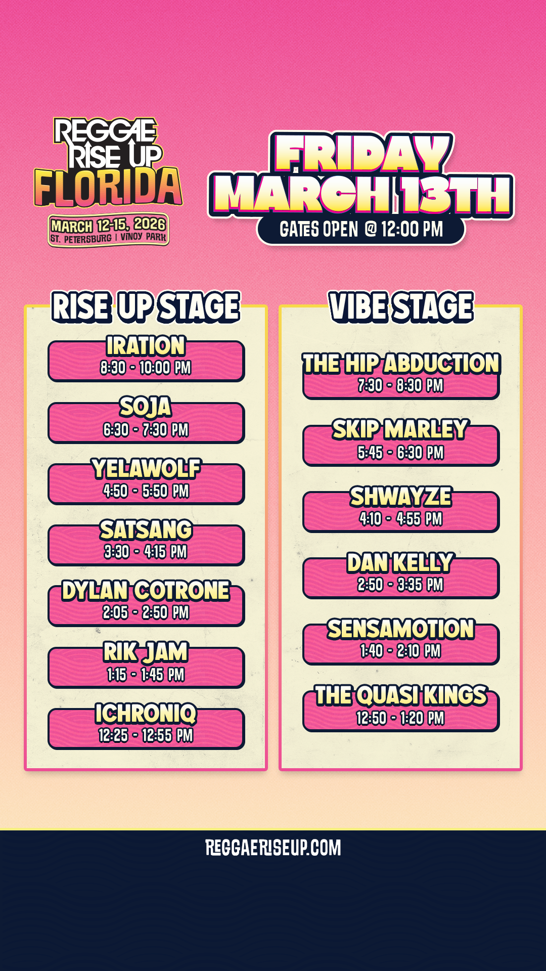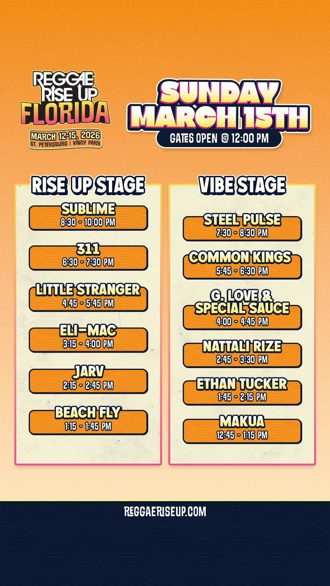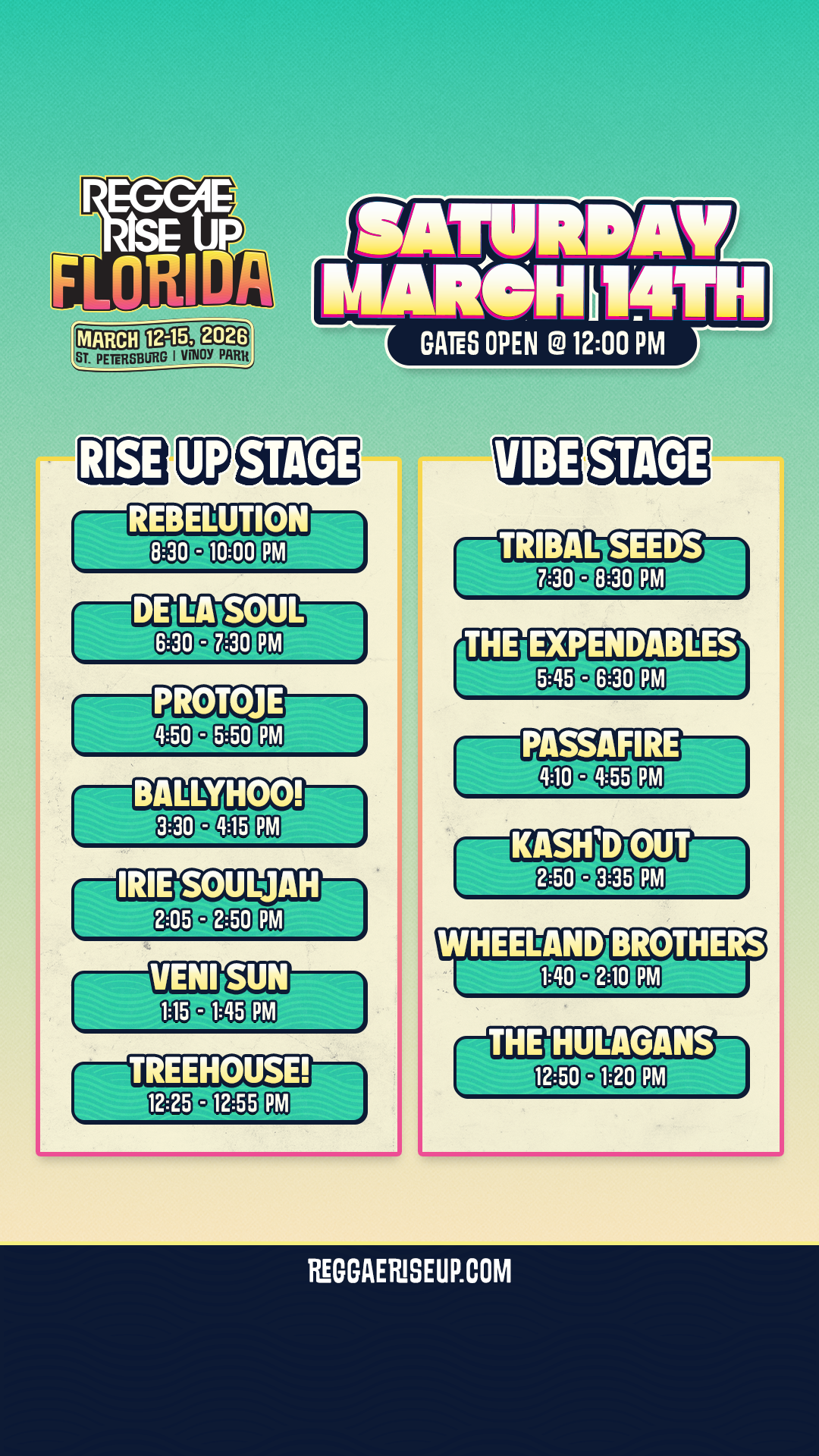 Reggae Rise Up Florida Festival Schedule